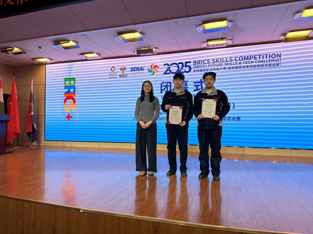 12月13日至16日,2025年金砖国家职业技能大赛数字化控制技术赛项国际总决赛在山东济宁职业技术学院成功举办。本次大赛汇集了来自全国各省、自治区、直辖市及海外多国层层选拔的43支顶尖队伍,同台展开高水平技能竞技。特种设备学院学生吕嘉祺和王政超(指导老师陈进熹、索原杰)凭借扎实的专业功底与稳定的临场发挥,从激烈竞争中脱颖而出,一举夺得数字化控制技术赛项国际总决赛一等奖,充分展现了我院在智能制造与数字化控制领域人才培养的显著成效。