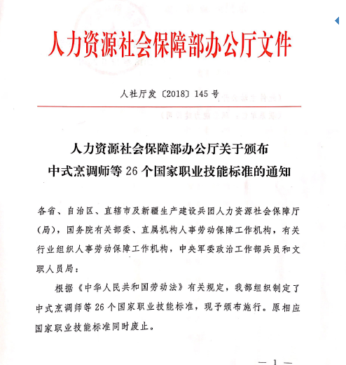 人力资源和社会保障部办公厅(人社厅【2018】145号)正式发文:“根据《中华人民共和国劳动法》有关规定,我部组织制定了中式烹调师等26个国家职业技能标准,现予颁布实施。”我校作为编写组组长单位编制的《电梯安装维修工国家职业技能标准》名列此次首批颁布的标准目录中。