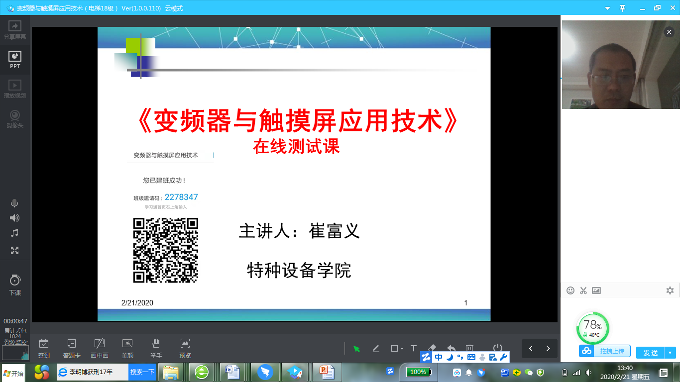 为顺利落实“停课不停学”的目标,保证学生在家里也能上高质量的网课,电梯工程技术专业于2月21日下午进行了网上教学联调测试。