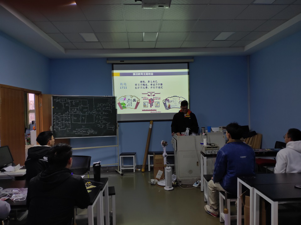 为了更好的加强反腐倡廉意识,树立廉洁理念,按照学校党委纪检工作部相关工作部署,特种设备学院于11月20日下午在教学楼分班级召开了“大学生党风廉政教育”主题班会。班会分别由各班班长和团支部书记主持。