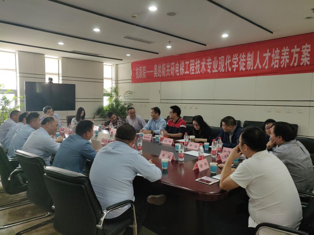 10月25日,恰逢杭职院入选中国特色高水平建设学校(电梯工程技术专业群成为中国特色高水平建设专业群)之际,奥的斯机电杭州服务中心总经理胡琨、奥的斯(中国)东区工地总经理黄坚、奥的斯机电东区工地总经理王灿炳、两家公司东区人力资源总经理及东区各服务中心总经理共15人,赴我校特种设备学院四楼会议共研奥的斯学徒班人才培养会议。电梯专业负责人金新锋主持会议,奥的斯学校(杭州)校长缪小锋参加会议。