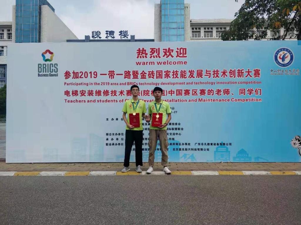 2019年9月23日至27日,由外交部、科技部、教育部等部门指导,金砖国家工商理事会主办,金砖国家工商理事会技能发展工作组等单位联合承办的2019一带一路暨金砖国家技能发展与技术创新大赛电梯安装维修技术赛项(院校组)中国赛区赛在中山职业技术学院开赛。来自全国各省市及韩国、老挝国家共计98名参赛选手齐聚一堂,参加了这项国际赛事。
