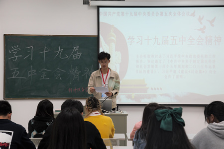 会上庄均涛梳理了党的第十九届五中全会会议公报的主要内容,并谈了自己的学习体会。随后参会学生干部结合学习心得和工作实际作了交流和体会发言。