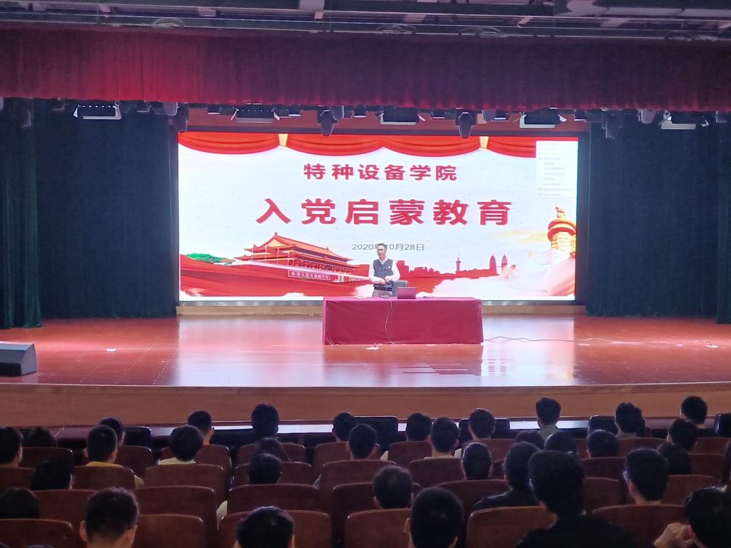 为了让2020级新生更好地了解党的基本知识、掌握入党要求和入党程序,进一步提高新生的政治觉悟,激发新生的政治热情,端正入党动机,引导和鼓励新生积极向党组织靠拢,根据学校《关于在2020级新生中开展入党启蒙教育的通知》要求,10月28日下午,特种设备学院在图书馆报告厅开展了2020级新生入党启蒙教育。学院党总支副书记顾林刚、学生党支部书记窦飒飒以及近200名来自2020级各班级有入党意向的学生参加,专职组织员傅淑燕主讲。