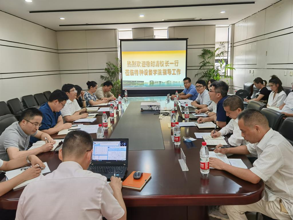 8月11日下午,校长徐时清到特种设备学院调研,党政办、发展研究中心(科研处)人事处、专业建设指导处(“双高”建设办公室)、财务处处长、党委学工部(人武部、学生处)等相关职能部门负责人陪同参加调研。特种设备学院党总支书记、执行院长郭伟刚主持会议。