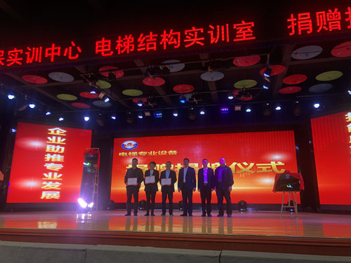 3月17日,在杭州市中华职教社的安排下,特种设备学院执行院长郭伟刚、杭州西奥电梯有限公司等相关负责人一行到贵州省台江县职业中等学校,为主题“企业助推专业发展,技能成就辉煌人生”的电梯维保实训中心举行揭牌仪式。杭州市中华职教社秘书长张灵仙、台江县委相关领导出席,县直相关部门单位负责人及台江职校师生150余人参加揭牌仪式。