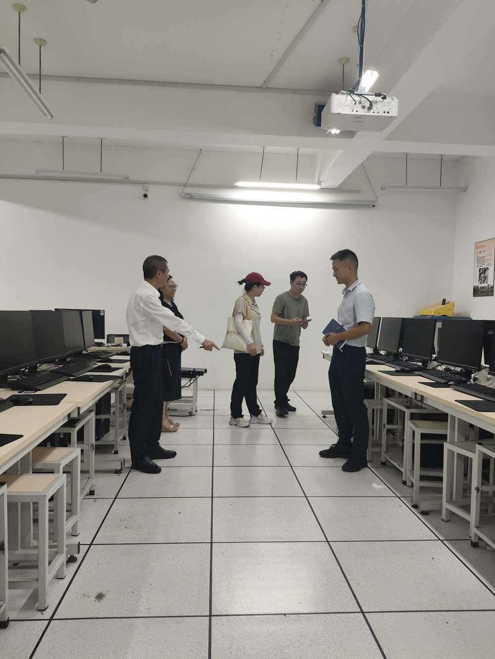 此次巡查聚焦实训室安全隐患和卫生情况,重点检查基建刚交付的大学物理实验室、电子电路实训室及几何量计量实训室。巡查组一行深入各实训室,在完成基建验收的实训室中,巡查小组重点检查了通风照明、墙面插座安装牢固度、电路布线等方面。在其他在用实训室中检查设备台面清洁情况,排查实训设备摆放、插座使用情况等可能存在安全隐患的薄弱环节。现场指出部分区域卫生清洁不彻底、个别实训室信息牌缺损等问题,并明确整改要求与时限。