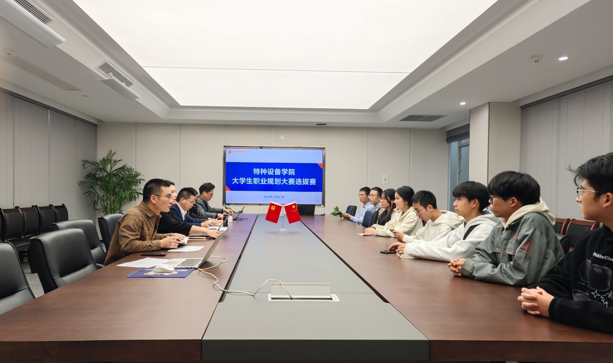 为引导学生树立正确成才观、职业观、就业观,10月27日下午,特种设备学院2025年大学生职业规划大赛选拔赛在10号楼A516会议室举行。特种设备学院党总支书记、执行院长郭伟刚,党总支副书记雷阳、项目办主任孙红林及辅导员代表林海峰担任评委,指导教师、学生代表到场观摩。