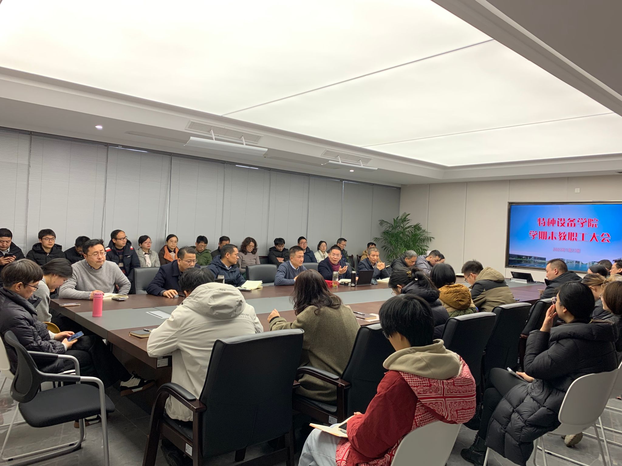 1月23日上午,特种设备学院召开期末全体教职工会议,全面总结本学期及年度工作,并展望未来发展。学院党政领导班子及全体教职工参加会议。