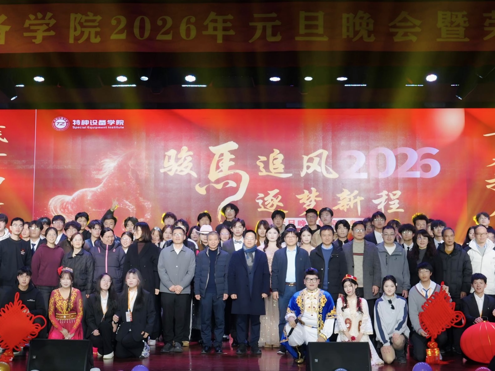 骏马追风启新程,青春聚力绽荣光。12月17日晚,特种设备学院“骏马追风 逐梦新程”2026年元旦晚会暨荣誉典礼在图书馆报告厅隆重举行。学院党总支书记、执行院长郭伟刚,副院长陈军统,副书记雷阳出席活动,与全院师生欢聚一堂,共迎新年。